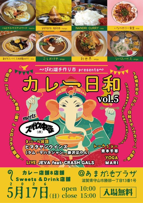 まちなか会場<中山道守山宿にぎわい広場> にぎわいマルシェ カレー日和とあわせて楽しめる、ほっこりローカルマルシェです。こだわりの飲食や物販が並び、守山の“今”を感じられるあたたかい空間。ふらっと立ち寄って、ゆったり […]