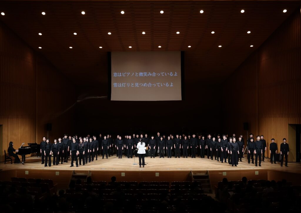 音程感や表現力、読譜力や呼吸の使い方などを養うために、プロのトレーナーによるソルフェージュを取り入れており、演奏会では合唱を披露します。