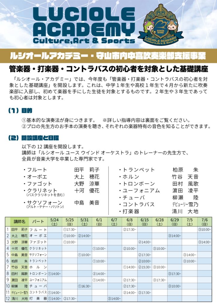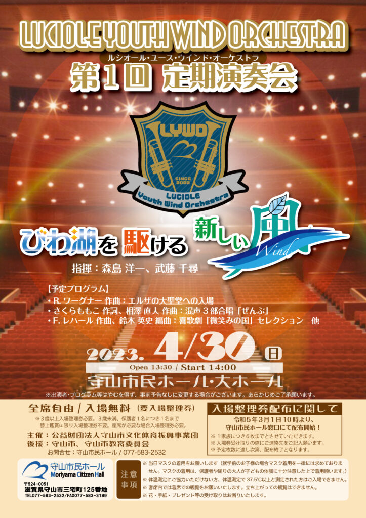 ルシオール ユース ウインド オーケストラは、「吹奏楽のまち もりやま」を目指して2022年10月に発足しました。