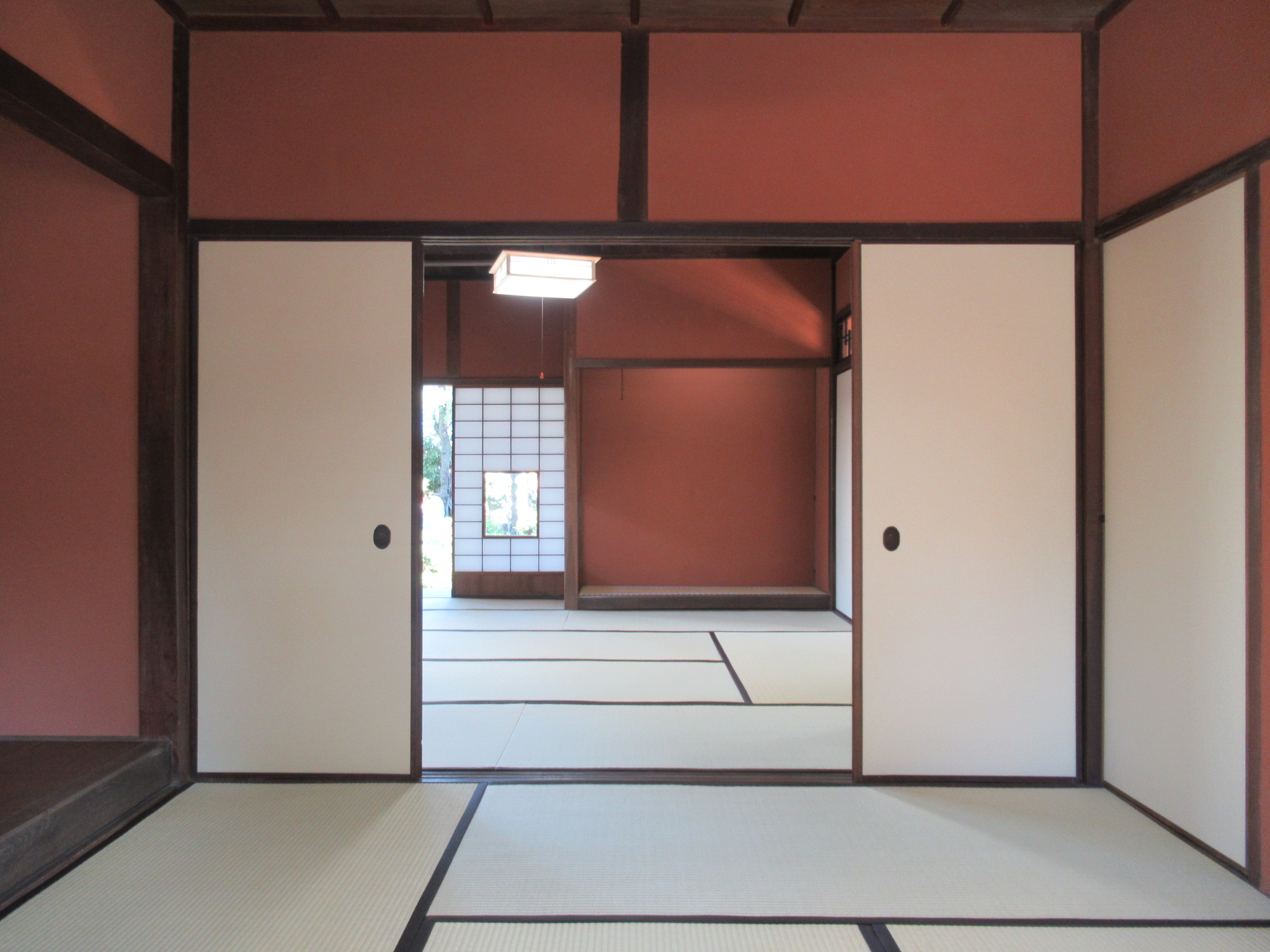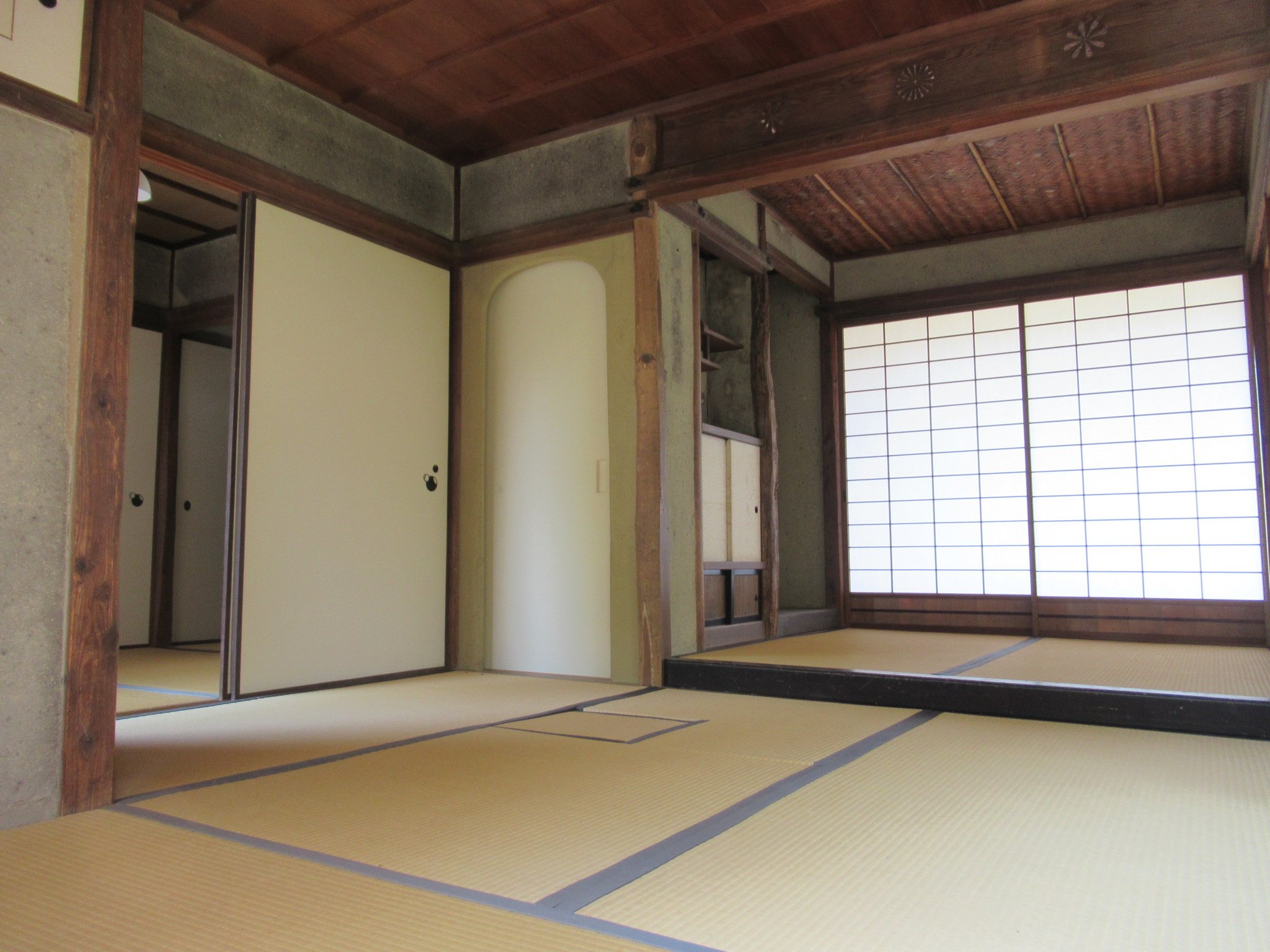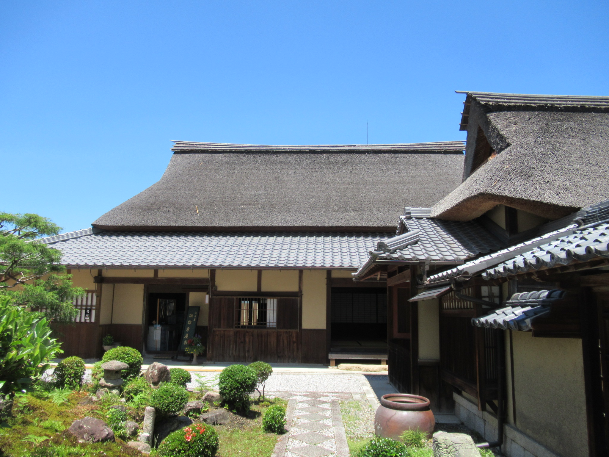 主屋・書院の建築年代は不詳ですが、文政(ぶんせい)年間の祈祷札や書院破風板(はふいた)の天保(てんぽう)年間の墨書などを参考にすると、文化(ぶんか)頃に2棟が合せて建築された可能性が高いと思われます。茶室は元禄(げんろく)12(1699)年の銘のある瓦が葺かれていました。