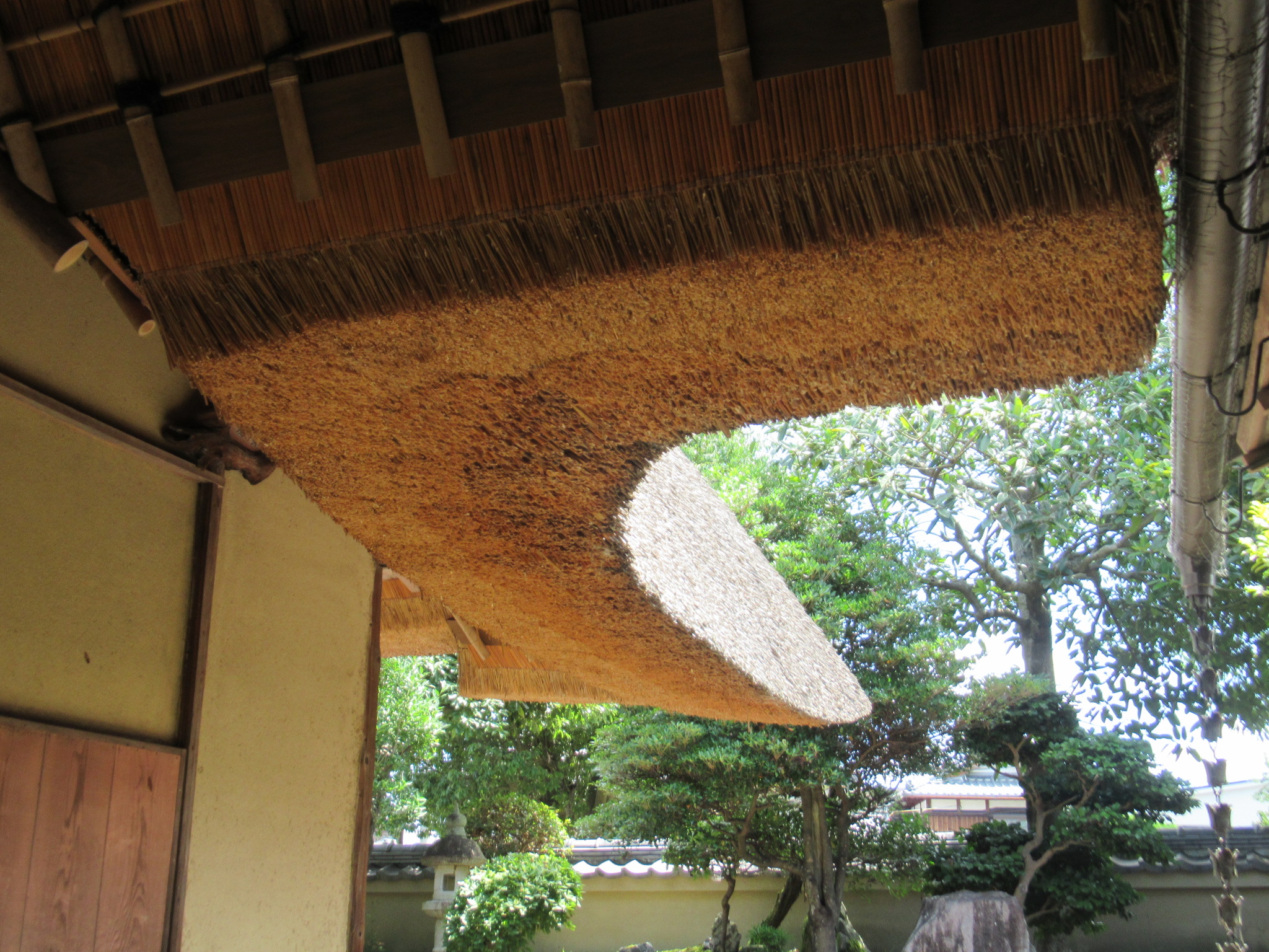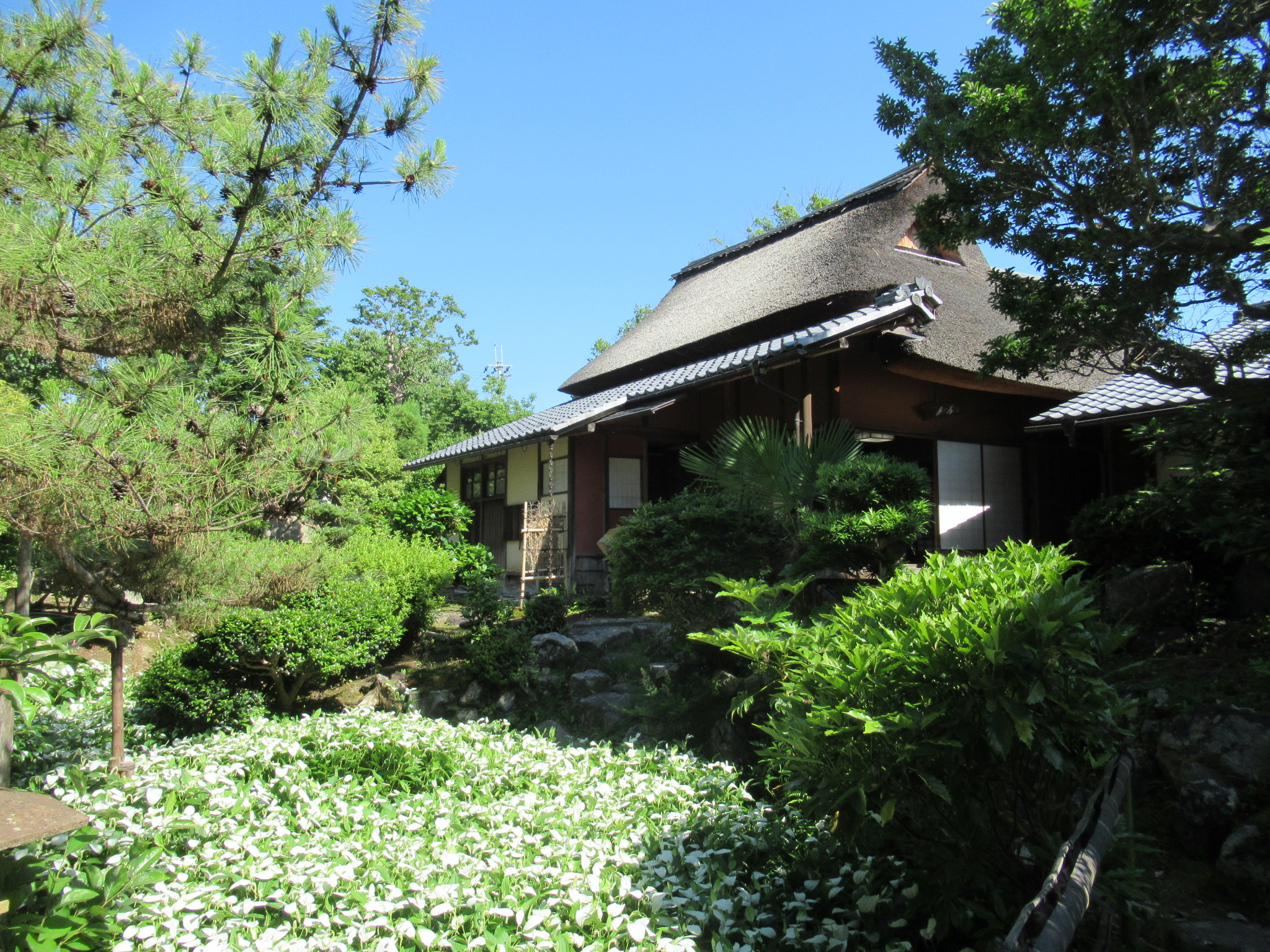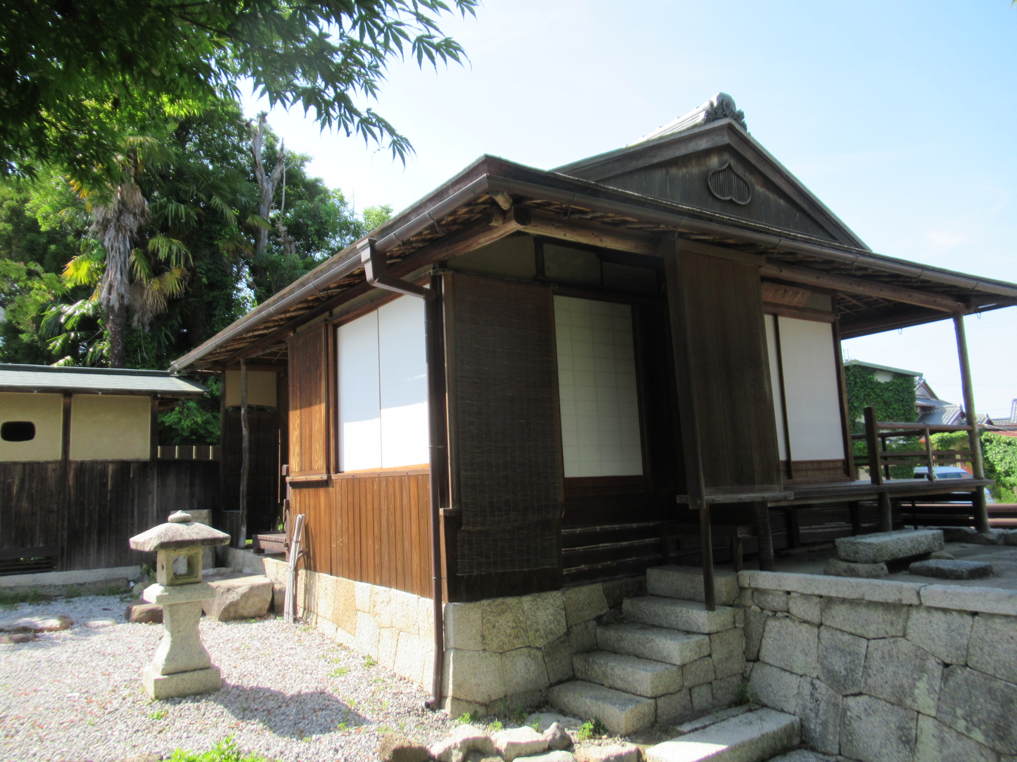 茶室は明治になって大津の円満院(えんまんいん)から移築されたものです。上段の間が設けられ、縁が付設されています。江戸前期の茶室建築として数少ない隠れた秀作です。