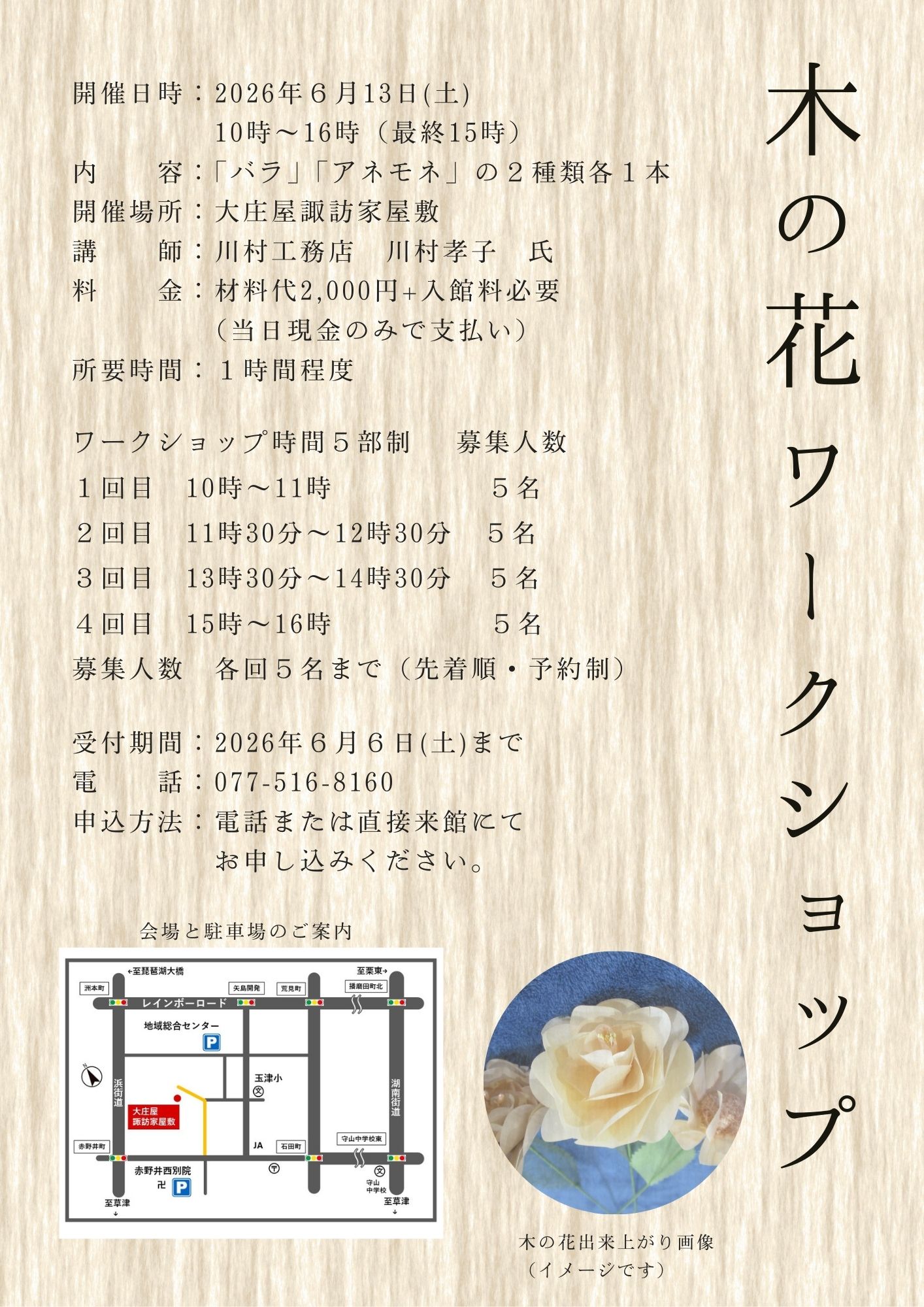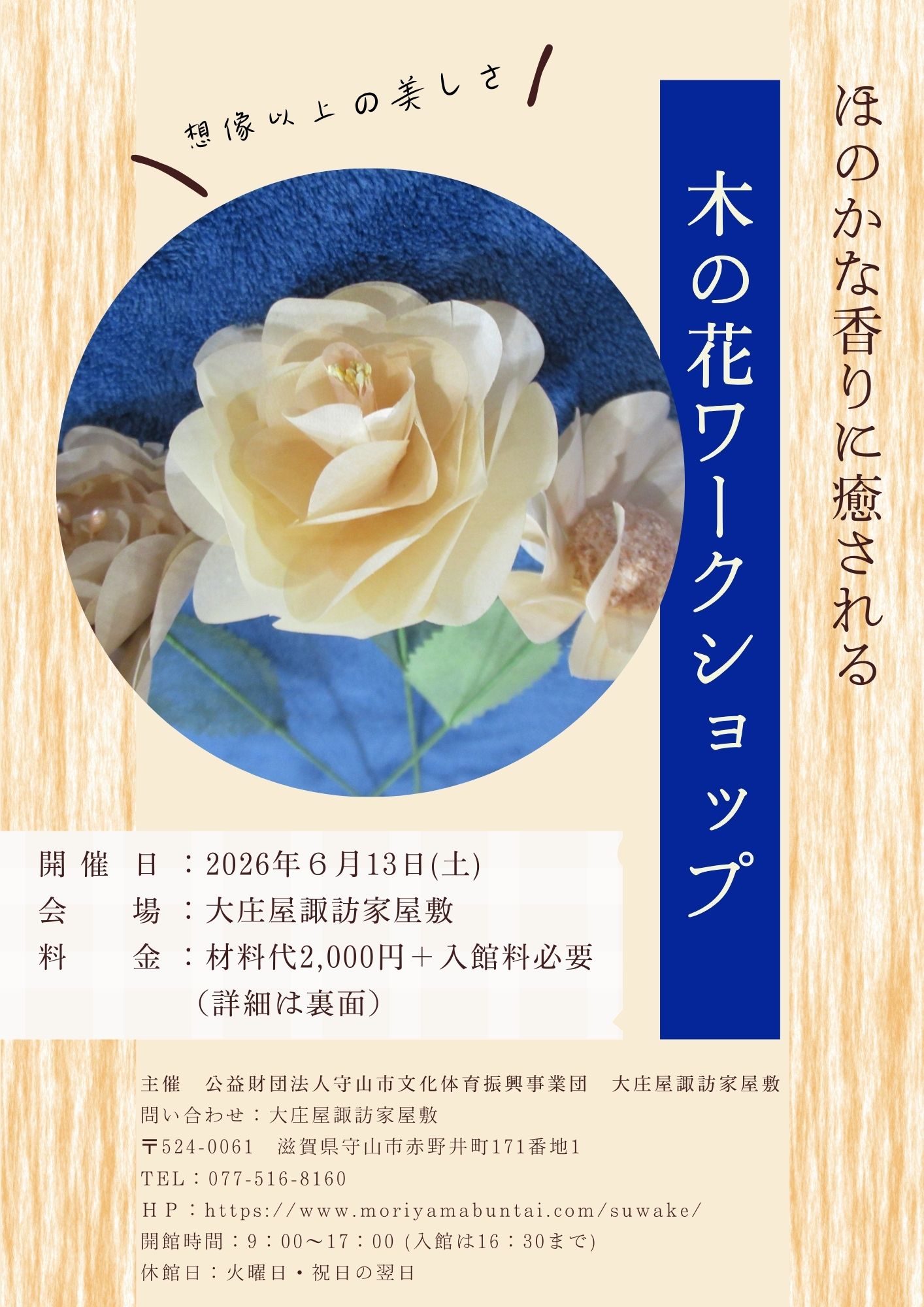 大庄屋諏訪家屋敷では令和8年6月13日(土)に「木の花ワークショップ」を開催します。