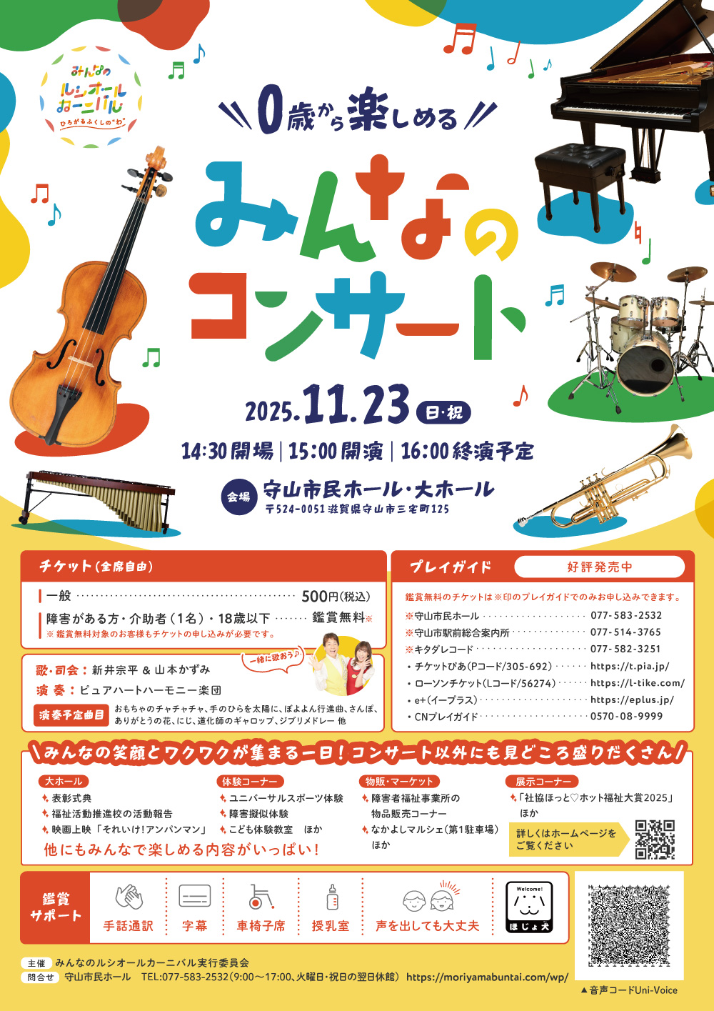 ※鑑賞無料のチケットは「守山市民ホール」「守山市駅前総合案内所」「キタダレコード」でのみお申込みできます。